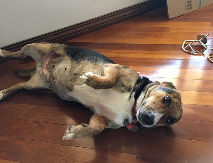 We have a 10 year old corgi/ kelpie cross dog very friendly with people. Loves cuddles and walks.