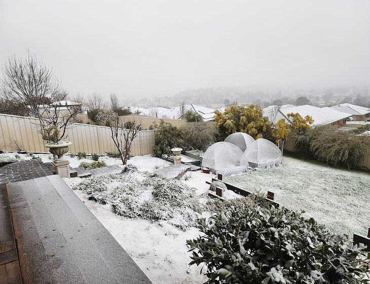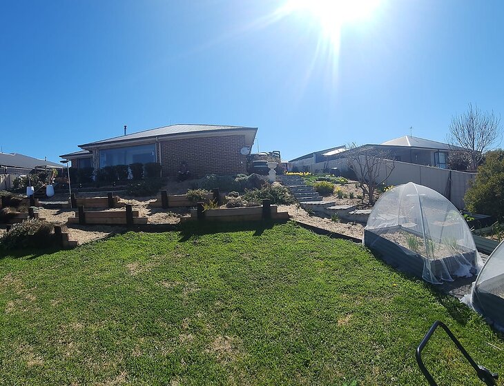 We maintain a productive veggie patch and have a collection of potted plants that will need regular watering, but otherwise the outdoor space looks after itself.