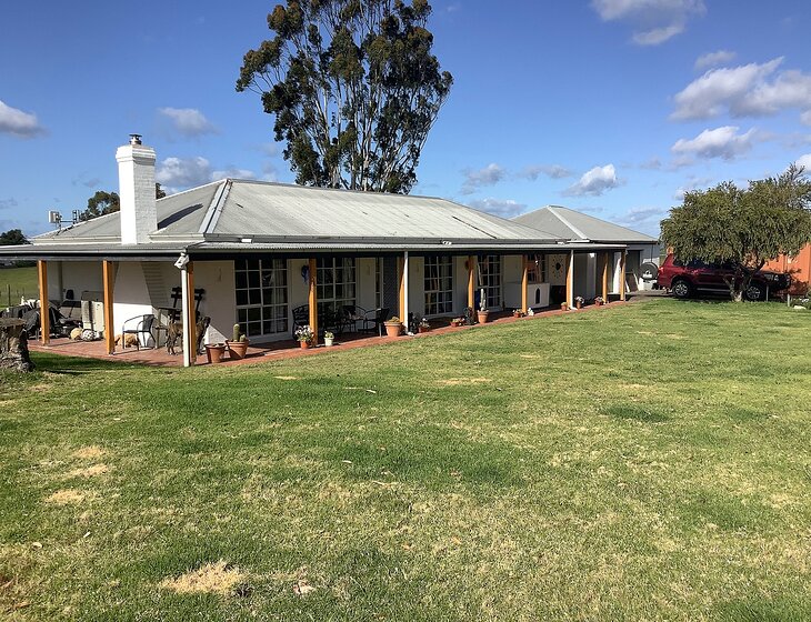 Our home is a quaint farmhouse sitting on 5 acres,1.4 km from centre of town (an easy flat walk). As it will be the cooler months no care of paddocks required only the house lawn mowed when needed with a ride on. We have reverse cycle for warmth in winter. We aren’t fanatical home owners just ask to keep home neat and tidy. House sitter can utilise house (room provided) or use own van/RV plenty of space. Able use all pantry, linen etc.