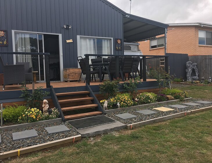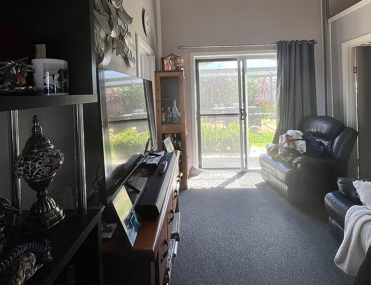 House has 2 bedrooms with Q/S beds, reverse cycle air conditioner, slow combustion heater (reasonable amount of wood supplied) & Starlink. The bathroom/laundry is a short distance outside. The back area is to be paved & a BBQ area created with a fire pit. I will update the outside photos as this happens in the next month or so.