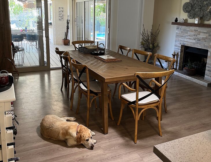 “It was such a pleasure to keep lively lab Daisy company, she is adorable! Very well-trained and she simply loves to be close to humans, loves to play and she can guide you to her favourite walks! Teresa & Steve have turned their house in the lovely Ormiston neighbourhood into a very comfortable home. It is decorated with great detail and it was a very enjoyable stay. My partner loves garderning as well, so he was happy to water the plants on a few hot/dry days. The communications were great via SMS as well. They can contact us any time if they need someone again to keep Daisy company. Thank you for trusting us with your beautiful puppy and lovely home. ”