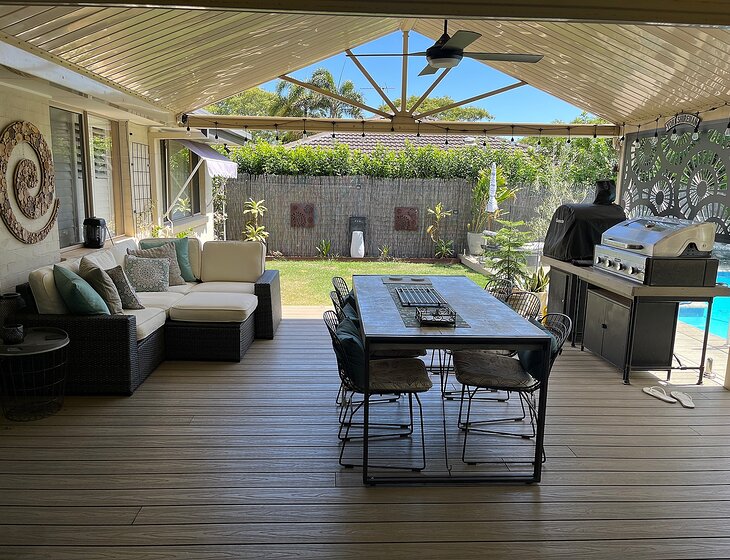 4 bed, 2 bath air conditioned low set home with pool & outside deck. 15 mins walk from Ormiston train station with easy access to Brisbane.