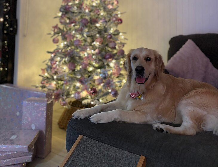 Our dog is a loving golden retriever who loves to play. She is toilet trained & spends her days coming in and out through the doggy door & spends the nights inside. She gets fed twice a day & all we ask is that you are able to bring her inside at night time before dark and have 2 small walks a day (around the block) She sleeps in her bed on the floor in our room. She is 4 years old so she can get very excited at times but it doesn’t take her long to calm down, mainly when you get home she is excited. She can tend to jump on you when you enter the house but if ignored, calms down quickly.