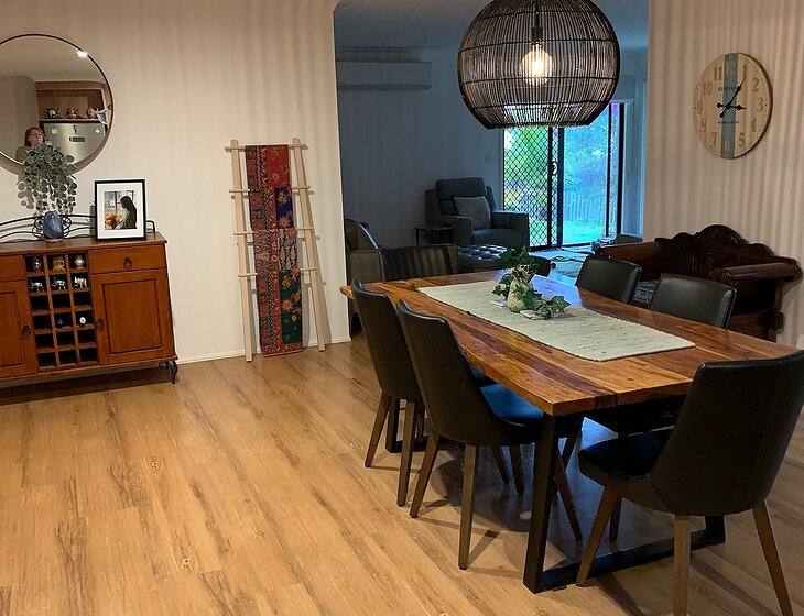 We have a 4 bedroom home at the northern end of the Gold Coast. 7 min walk to our local shopping centre which includes Woolworths, service station, chemist, mcdonalds, takeaway cafes, newsagent, bakery , doctor, dentist, vet. There is a tavern and a park with a lake 5 min walk away. There is a Westfield 10 min drive away with Kmart, Target, Woolies, Coles and Aldi.