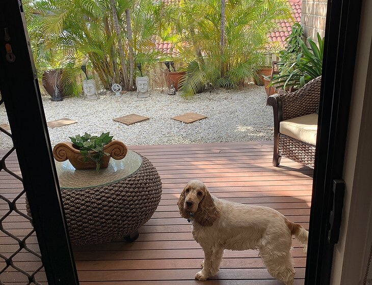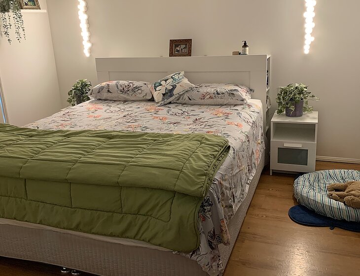 I require my 6 year old male Cocker Spaniel, Quin, to be looked after. I need someone to be home most of the time as he loves human company. Therefore I prefer a non smoking mature couple or a mature single for this placement. Retirees would be perfect. He has no health issues, but requires ear drops once a week for ear maintenance. As you can see from my bedroom photo, he sleeps in his own bed on the floor beside my bed. He enjoys a walk, it doesn't have to be every day. He loves a throw of his frisbee in the back yard also.