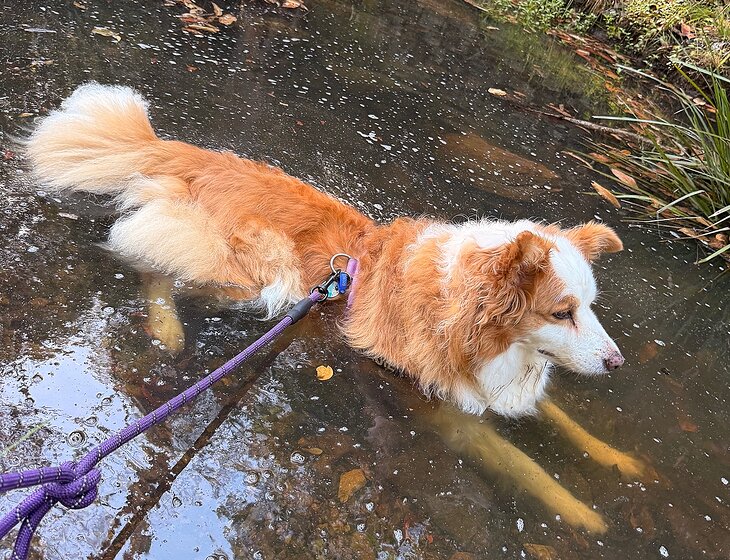 Maggie is a nine year-old border collie who is excellent at walking on the lead, and a great cafe dog who will settle peacefully under the table with the water bowl and let you enjoy your coffee and breakfast or whatever (she won’t say no to a bit of your toast though).