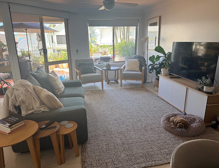 My home is a small comfortable 2 bedroom, 2 bathroom ground floor unit in a 3 storey walk up of 18 units with large front and back patios. The complex has a swimming pool.