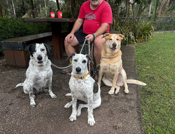 Hello, we are a family of 4, and have 3 rescue dogs called Peggy (8) who is a deaf kelpie cross and Wallace (6) who is a red heeler cross and Mocha (1) who is a deaf mix of everything including boxer.