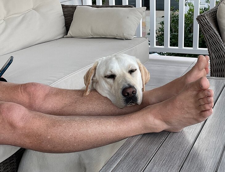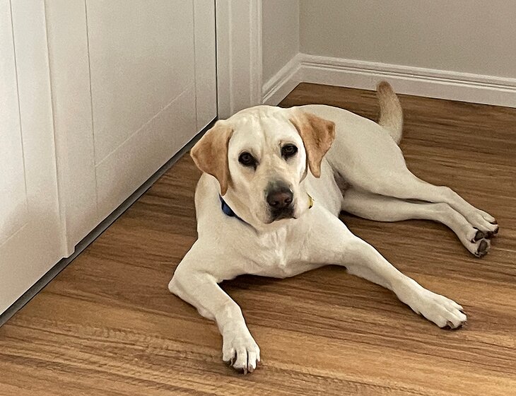 We have a female yellow 3 1/2 year old labrador called Dory. Needs walking daily and lots of love and attention. Is fed twice a day and sleeps in the lounge room (on her bed).