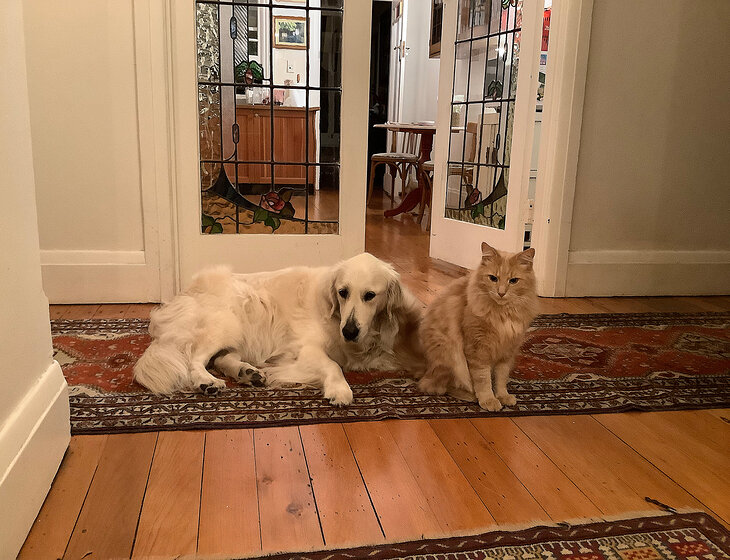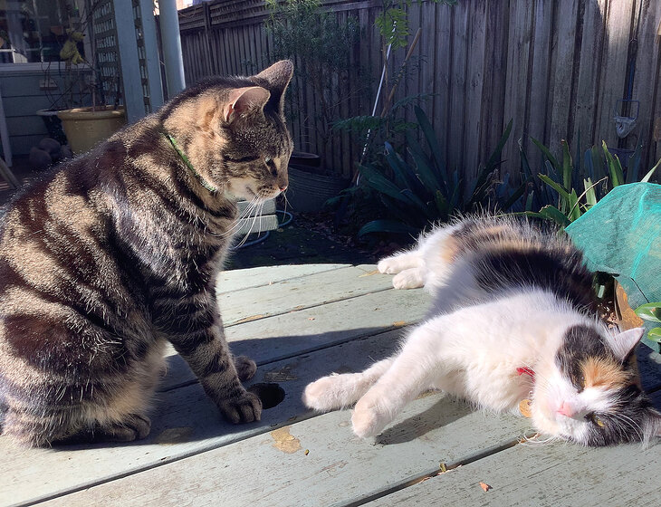 Chelsea needs two good 40 minute walks in the morning and evening. Several parks are nearby. The cats are used to being fed twice a day and require love and an occasional lap to sit on. Because our animals are used to company much of the day, the role would suit a retired couple or a person working from home.