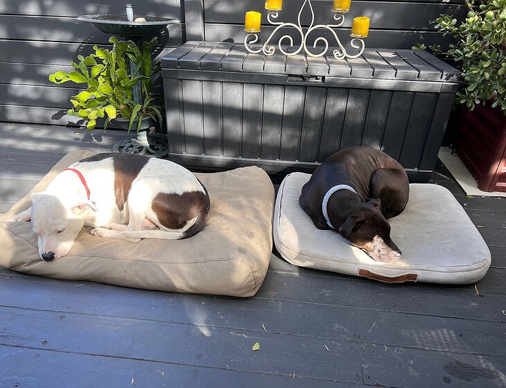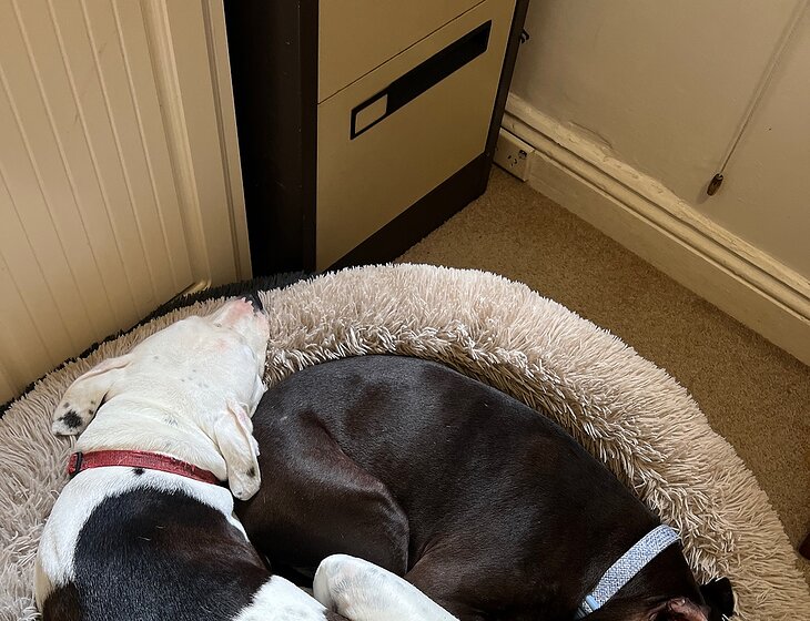 Our oldest dog is a male de-sexed American staffie (9 yrs), loves other pets when we are at the park but not sure how he'd behave with another dog inside HIS house. I don't let him off at the park as he plays roughly (like all staffies do) and I don't want him to inadvertently injure smaller dogs. He only needs about a 30 min walk in the morning but would love a 2nd one in the cool of the evening but not essential. My 2nd dog (also a de-sexed male Staffie/cross red cattle - 5 yrs old now) has working dog in him and will not run away....he knows his name and can walk off lead in a park so long as the older dog stays on lead.....and you are happy to throw a tennis ball for him...repeatedly!