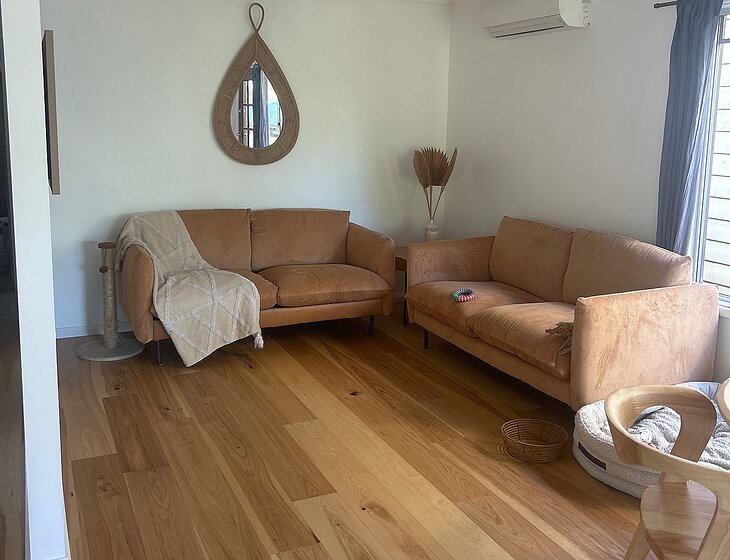 We live in a treehouse style home, in a quiet and safe neighbourhood by the water. Our house overlooks the bay from the deck. Upstairs there is one bedroom with a king bed, one bathroom a home office, a wellness room with a pull out sofa, a large kitchen and living room available for use. Downstairs is mid renovation so won’t be available for use, but is detached from the upstairs and won’t be worked on during your stay. We have two affectionate, hypoallergenic dogs and an indoor cat. Best suited to a single person or couple who are able to walk the dogs every day. Yard is fully secured for dogs to use. We have used mindahome several times, both as sitters and to find sitters and each experience has been great. Our place has available WiFi, Aircon, TV with streaming access, a range of kitchen appliances (including dishwasher) and a sauna that can be used. Our place is an 8 minute drive from Woy Woy town with a range of shops and train station, 12 minute drive from Ettalong beach and town, 14 minute drive from Umina Beach and town, and 15 minutes from Gosford. Lots to do in the area, including great restaurants, beaches and walking tracks. Read more...