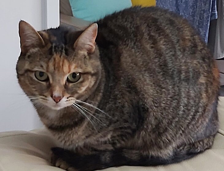 Rosie was a rescue cat, is very shy, and is more relaxed with females.