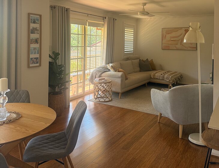 I have a three bedroom, two bathroom townhouse where living is all on the same level. There is a home office for those that require it and everything is low maintenance. I have a small courtyard with plants that need watering every few days. Maisy is an indoor dog and very well-adjusted. She loves company but is equally ok to be at home on her own during the day. You will hang plenty of time to enjoy the coastal lifestyle.