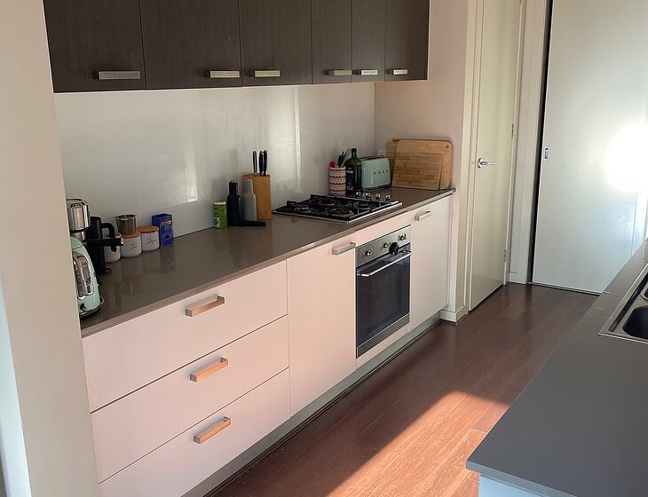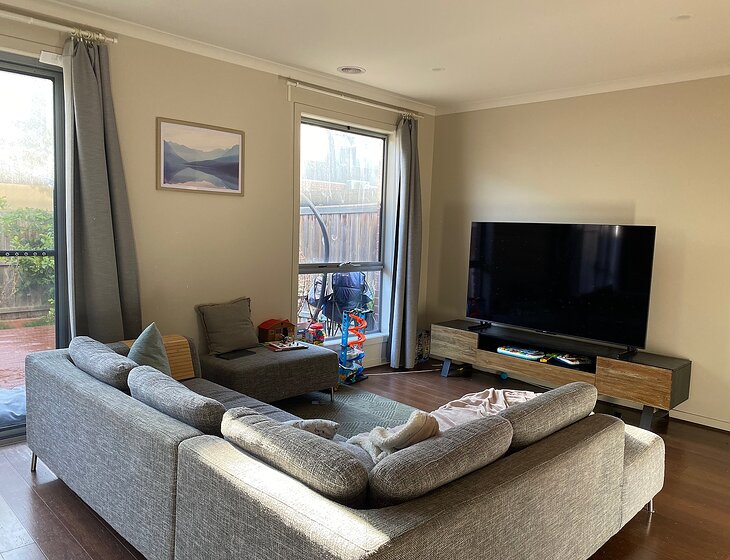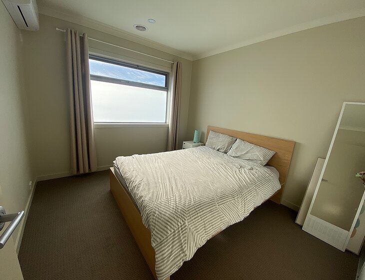 Our home is two floors, downstairs is open plan area including kitchen, dining room and living room with access to small backyard. We have a guest room upstairs with your own bathroom and toilet. The guest room includes air con/heater.
