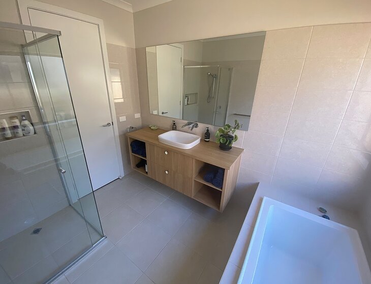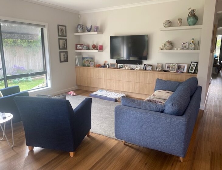 Our house is 3 bedrooms and a study, 3 living areas and 2 bathrooms. Our yard has an entertainment area, lawn space and garden beds, which i enjoy developing.