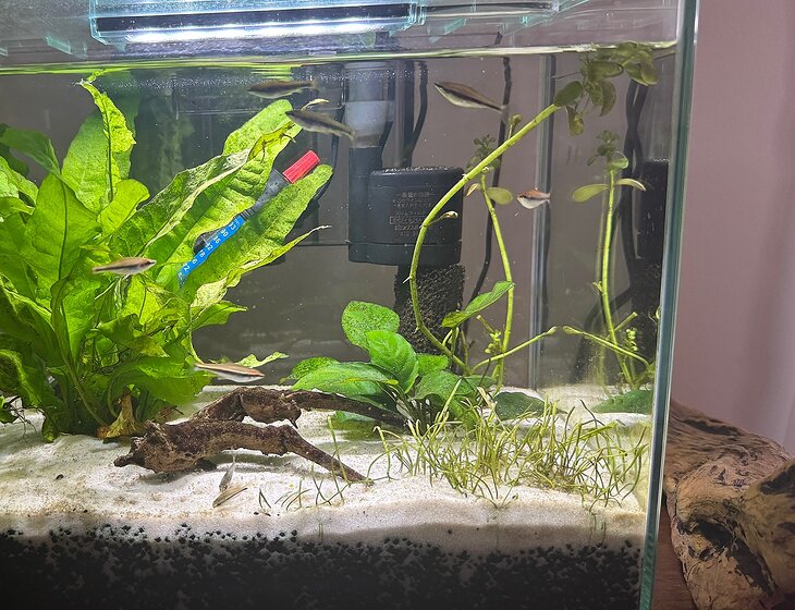Pet sitting required: | 1 dog, 1 cat, 6 other animals (Fish) |