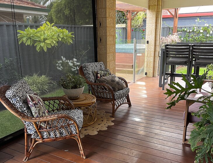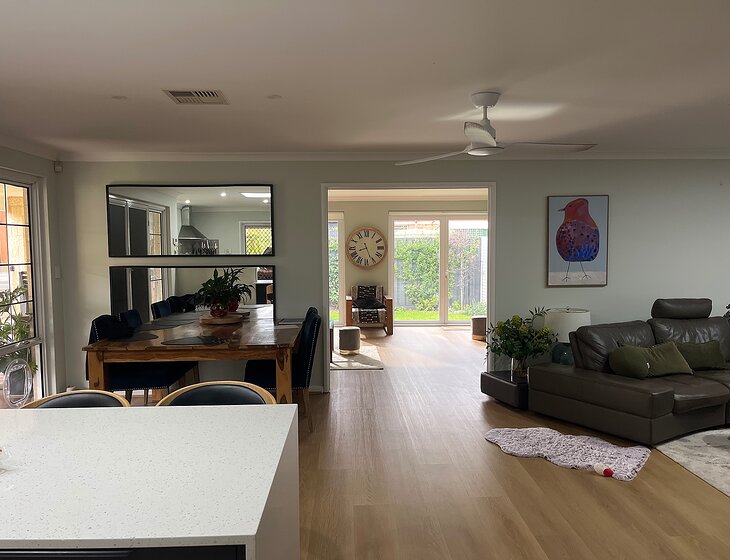 Walking distance or quick 2 min drive to shopping centre . 5 min drive to warnbro beach . 10 min drive to Rockingham and 25 to Mandurah .