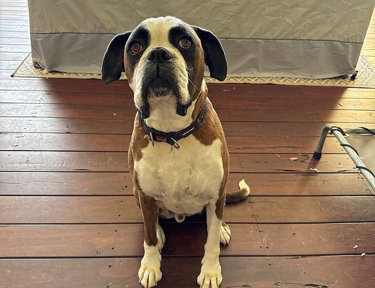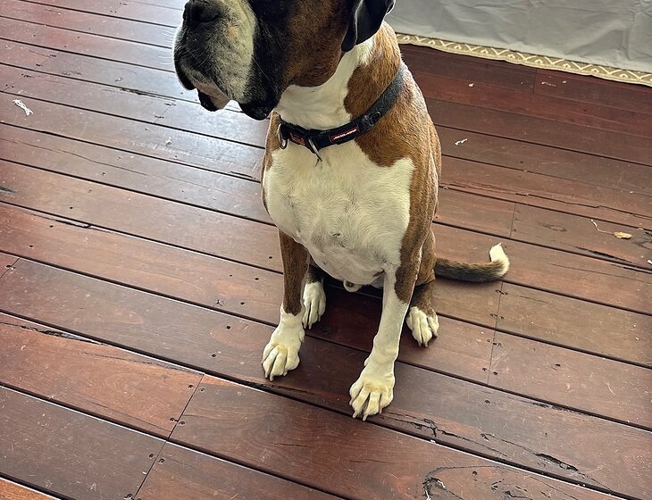 Someone required to look after a boxer dog that is mainly an outside dog that comes in of an evening and sleeps outside. Walking distance to shop and beach.