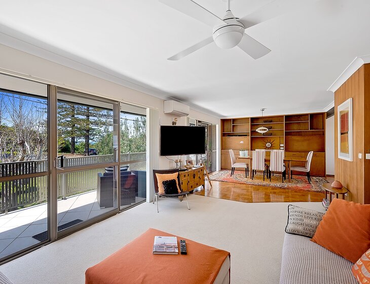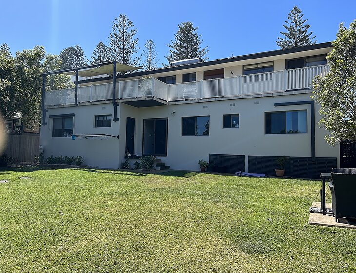 I live directly opposite Shelly beach which you can walk along the coast to lighthouse or back into town. Next to Flynns Beach and I have a beautiful dog cocker spaniel Bella who does not bark and will love you to death soft and a lady.
