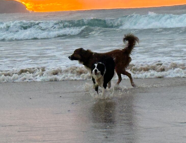 Our two dogs are used to a woman carer and we would prefer a woman with experience caring for two border collies. They have so much joy and energy and love fetching sticks and a ball at the dog friendly beaches and the back yard at home. We love our seaside home, close to Rainforest reserves, national parks and pristine beaches - dog friendly. We have a three bedroom home with resort like main bathroom. Queen size bedroom upstairs, parents retreat with ensuite and balcony over looking the palm trees and reserve. Back yard is fully fenced and access to the garage where the dogs can sleep and run freely outside. Nova our cat is very independant and all pets are affectionate. The dog friendly off leash beaches are Lighthouse and Nobbies beach which are a 7 minute drive either way. Koala hospital and Koala zone surrounded by trees and extraordinary coastal walks.