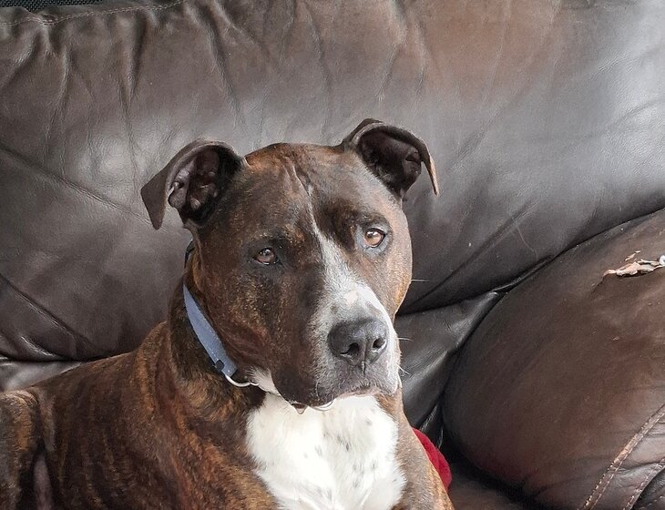 We are looking for a dog friendly sitter to keep him company while we're away. He's very friendly, loves a walk, but spends a lot of the day snuggled up on his bed. (American Staffy).