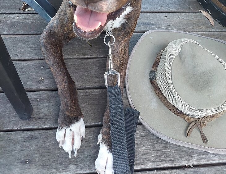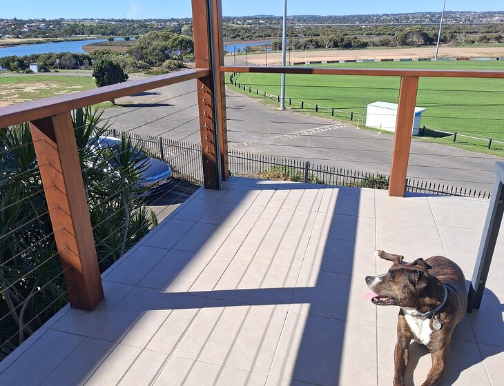 2 story house close to beach and Onkaringa river and reserve. Walking 10 mins into township. Our dog is a 7yr old Amstaff cross. Very friendly to people and other friendly dogs.