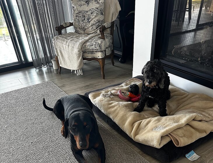 1 spoodle (14 and deaf) needs a little bit extra and 1 Doberman who loves dinner times and walks most of all. Have never considered leaving them in kennels and now that we don’t have our kids at home anymore, we are in need of pet sitters for times away. Our girls are easy to look after with lovely natures. We’re pretty ok too 😬
