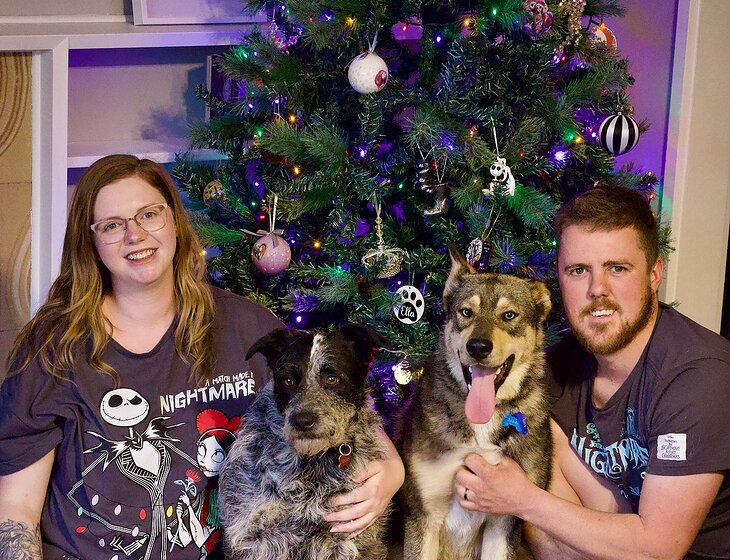 They anre inside and outside dogs and they sleep in a crate at night Then we have two inside cats John who once he warms up loves a cuddle and Harlow who has a nickname ghost cat she is very shy even with us so will often hid.