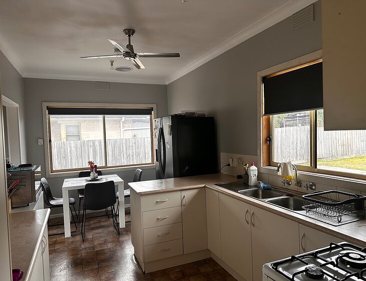 3 Bedroom home is dated but our dream doer upper. Has a renovated bathroom and toilet. Rebuilt sunroom. We have two very energeticamd friendly dogs Ella is the oldest she is 5 and is a staghound cross blue healer who loves to play! She also has a tablet twice a week. Bandit has just gone one and is again super playful, does have a habit of jumping on people which we are working on.