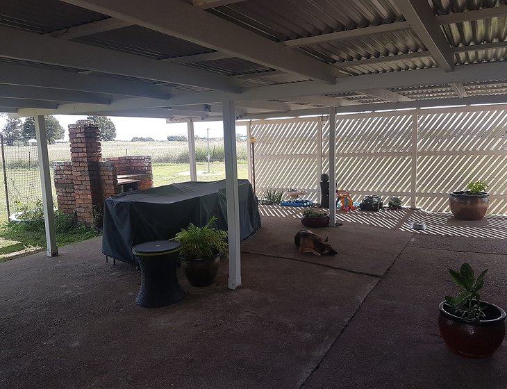 Large Pergola with BBQ and Outdoor Setting with LED lights. Large concrete pad with 15 Amp power outlet for Motorhome /Caravan parking. Under cover parking available for car.