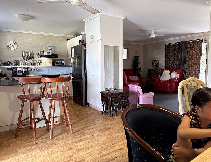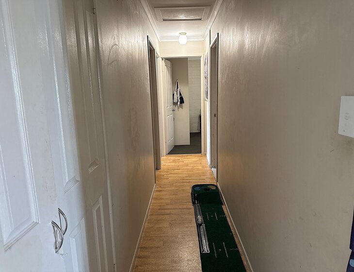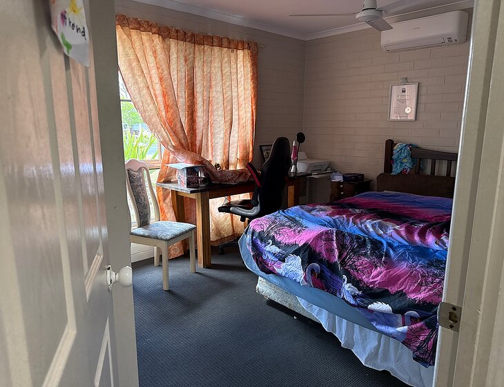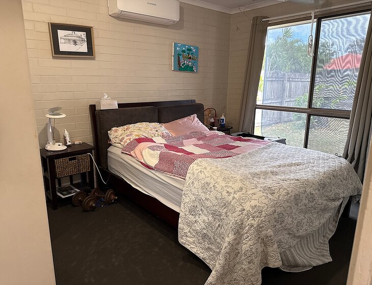 3 Bedroom home with front and rear yard. Dog usually spends days in the yard and nights inside the house. The spare room has a queen bed - for your use. The carport will unfortunately have my car in it.