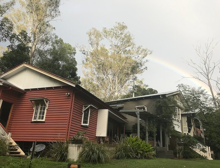 We have a secluded air conditioned artist's retreat in Pullenvale- which includes 2 old queenslanders that we moved in. We are quite low and surrounded my tall trees so not a neighbour in sight! My husband Nick Olsen is an artist and I am a musician and audiologist. Kids are mostly gone. We have chooks so it's great if the chook yard can be shut every time at dusk. There is LOTS of art and kind of a rustic environment (code for -original bathrooms and hand me down couches..lol). There is an awesome coffee van at top of driveway called the Curious Caravan!