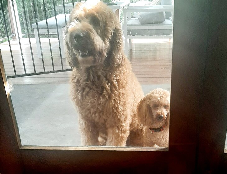 I have 3 dogs, one standard Groodle "Ziggy" who is the most beautiful gentle giant. We also have 2 tiny dogs one is a fox terrier "Bill" and one sweet Poodle "Max".