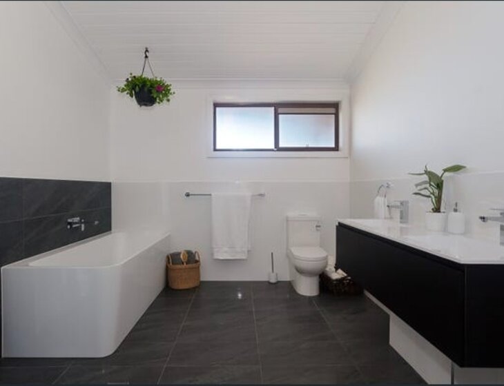 Three bedroom family home on two levels with great lake views from the timber deck. Complete home gym downstairs. Wifi and smart tv available. Close to all amenities and beach is 30 minutes away. Lawns will be mowed by contractors.