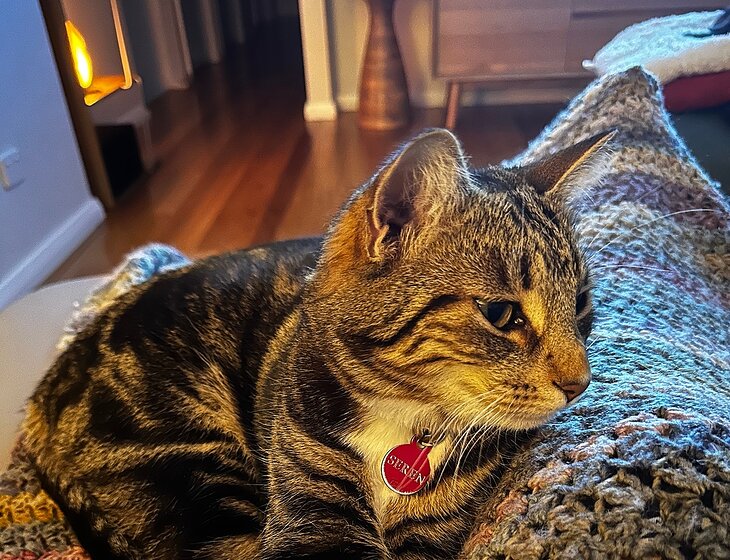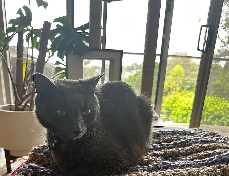 Juno (Russian Blue) and Seren (Tabby) are both rescues :) They are people friendly cats who will keep you company and give you attention. They are OK outside during the day but indoors only at night. Juno is on daily medication but we have her trained well, and is very playful. Seren likes any human who doesn't try to to pick her up and has V8 sized purr. It's a delight to hear.