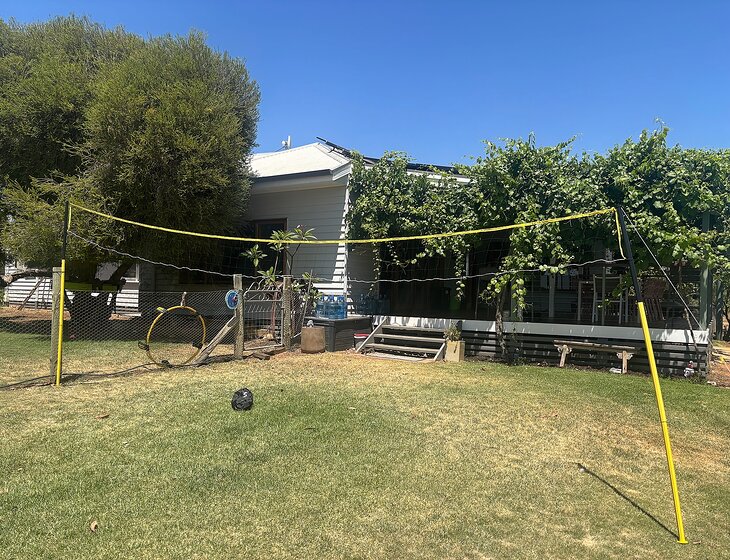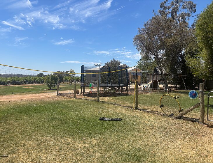 4 bedroom family home - semi rural property surrounded by vineyards in the beautiful Sunraysia area, also known as tropical north Victoria along the Murray River. Pool, vine covered deck with gorgeous vineyard views. Outdoor play equipment, indoor gym equipment.