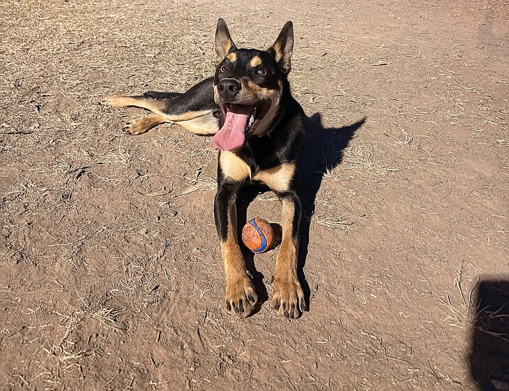 We have an energetic and very friendly 1yr2mo kelpie-Loki, well house trained and excellent with potty, he does his business in the yard and will let you know when he needs to go.