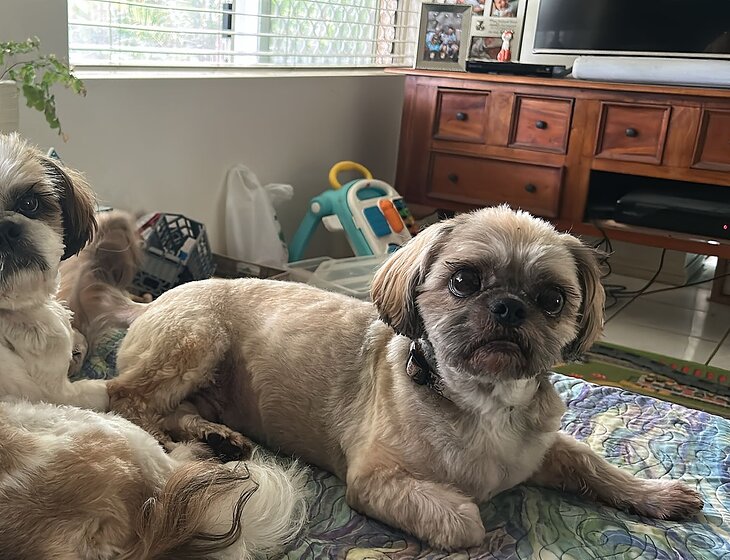My priority is the care of two Shih Tzu dogs:9 year old Teddy and Leo (7 years.) They are my best mates, so have the run of the house,sit on the sofa with me, and sleep with me. You will find them very affectionate.