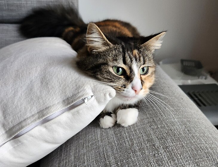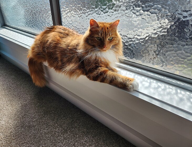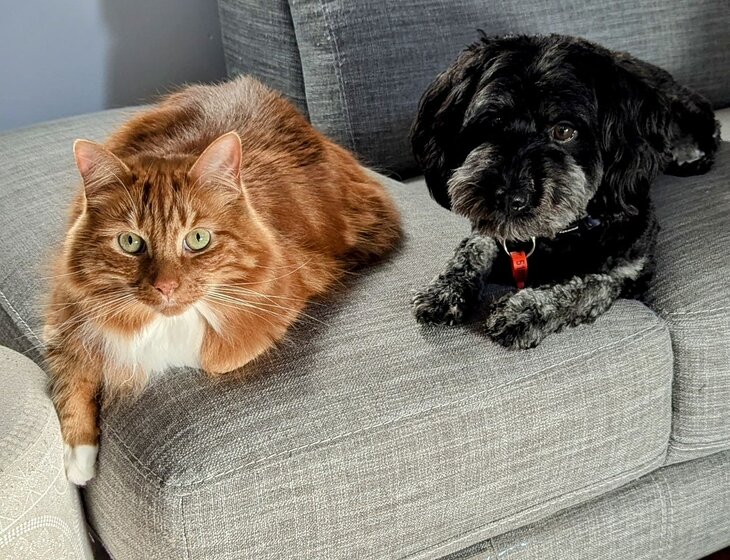 The cats are very low maintenance and Diesel is happy with his two short walks per day and loves cuddles.