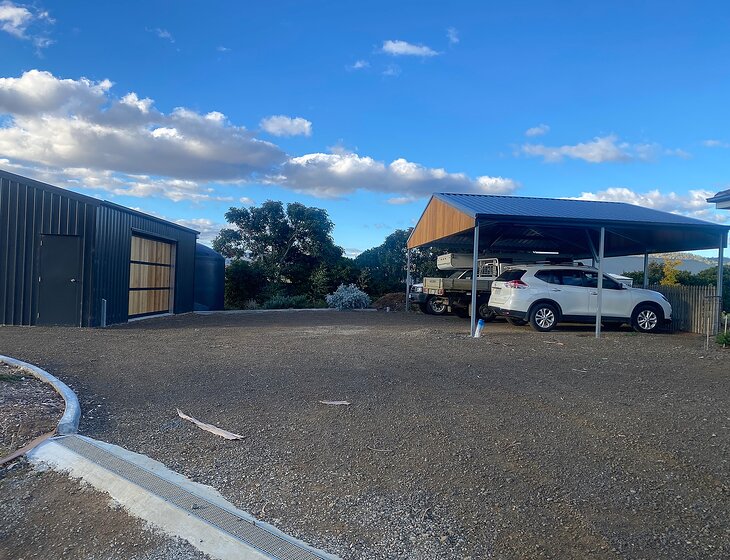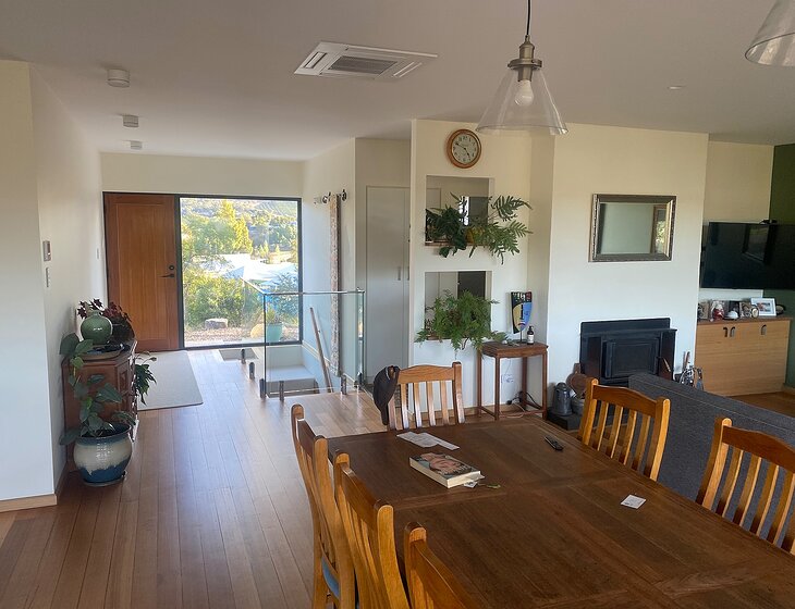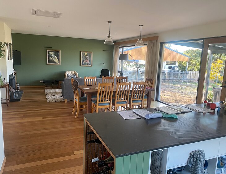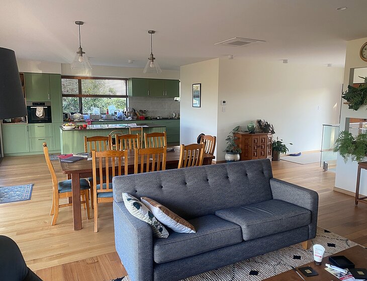 2 large bedrooms (1with ensuite bathroom), office, main bathroom, open plan kitchen/dining/lounge, cellar/rumpus room, large residential block and garden, plenty of parking, large shed/workshop, 4 chickens, 1 friendly border collie/kelpie