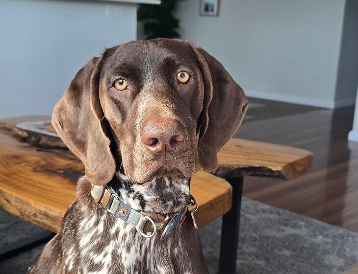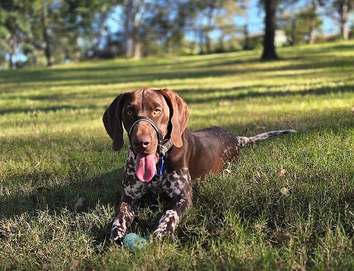We have a 15 month old GSP (German Shorthaired Pointer) with lots of energy. She is very sweet and loving with a kind gentle temperament. She requires walking at least one to twice a day. She loves the beach and any outdoor activities.