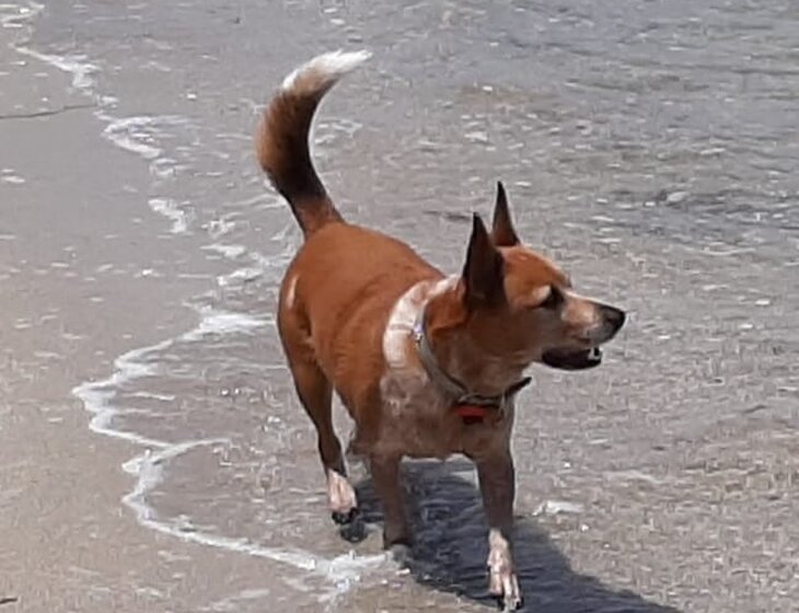 “Milo is a calm and cuddly Cattlejack (Red Heeler/Jack Russell mix) who absolutely loves meeting new dog friends on his walks.