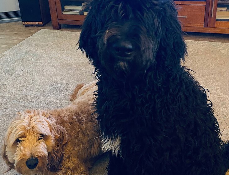 Two young dogs Marley a miniature Groodle 2/12 yrs old and Harry a 8th mth old medium Groodle who have the run of the house and garden.