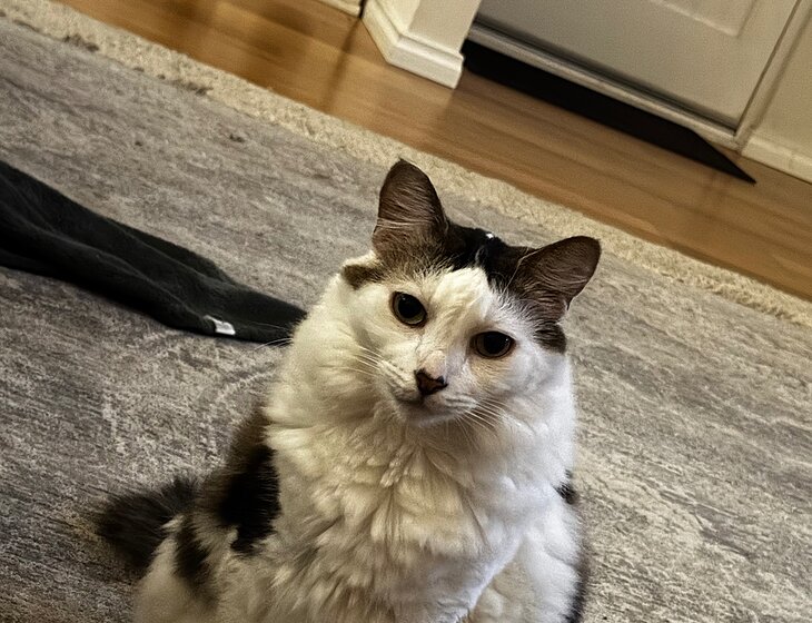 Elliot- black & white (boss man) He likes to judge from afar. Takes a while to warm up to people.