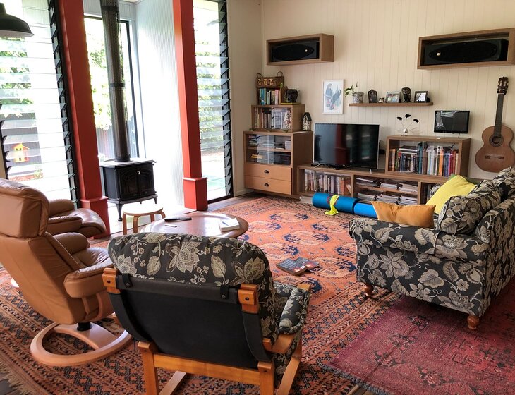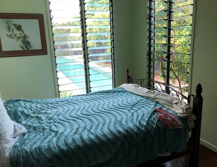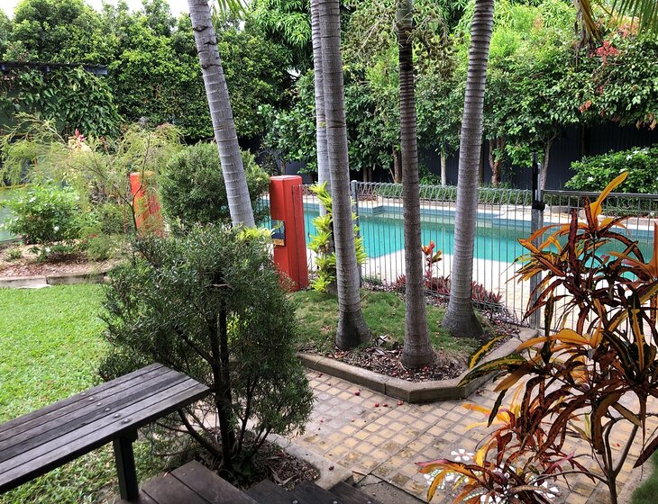 25 metre fully private lap pool and 1/4 acre easy care garden full of birds, including resident bowerbird and curlews. No pets to care for.
