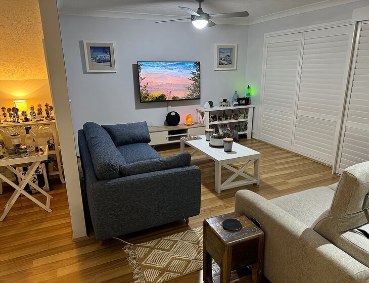 Seperate toilet downstairs and upstairs. Bathroom located upstairs. Two bedrooms are available when sitting, the other is my office. Both bedrooms have AC.