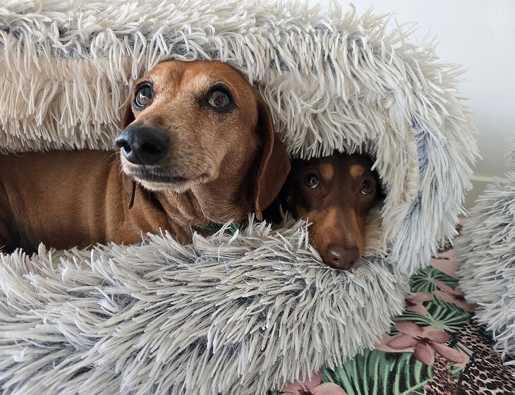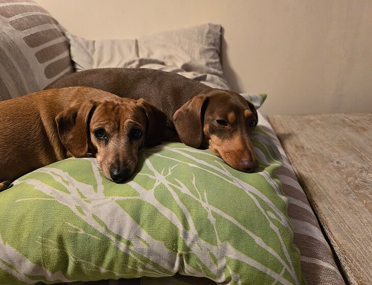 We have 2 adorable sausage dogs, Ventti and Rawrie who need company while we're away. They are no dramas at all, they get fed once a day, with a couple of treats for lunch (if they've been good!) No walking is needed, but a play of the ball in our yard would be fantastic.