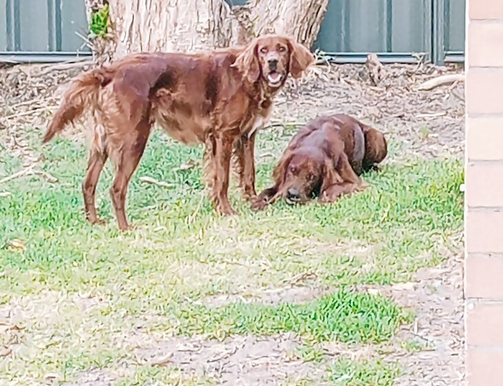 Dash and Jarrah - two Irish Red Setters, aged 4, littermates, F/M, Entire/vasectomy.
