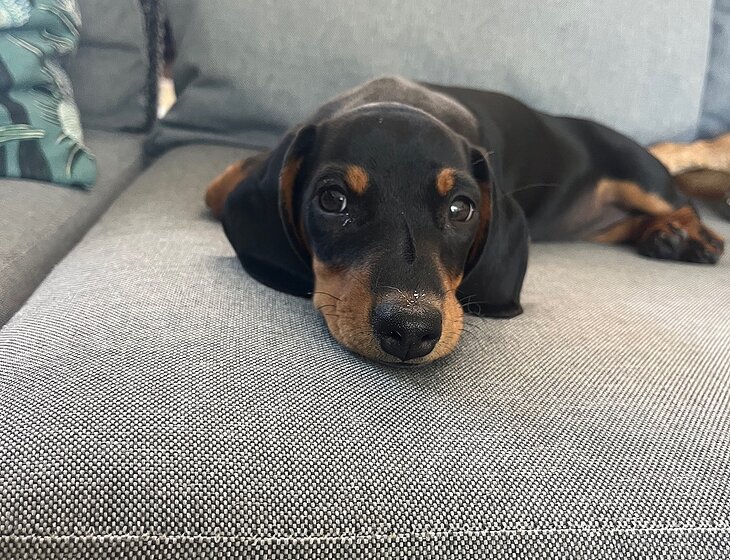 Popcorn is our teeny tiny pup. She is a snuggler and loves to wrestle with Roy and play with her toys. She is crate trained overnight and loves going for short strolls to the park. Being young we are still working on her toilet training but she’s doing a great job!